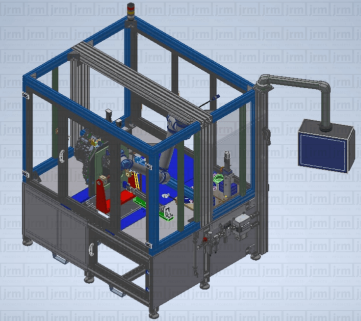 Célula robotizada con robot colaborativo para la medición de componentes de motores.